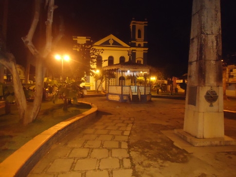 Iniciei essa crônica exatamente às dez horas da noite do domingo passado; às 21h40 tirei a foto da imagem acima. O que me fez tirar essa foto foi a lembrança de tempos de criança e de adolescente em que, num domingo como hoje e neste mesmo horário, a praça estava festiva, repleta de gente; fiéis que após a missa e outros que do cinema saiam, ali ficavam para curtir o resto da noite; no coreto, a Banda do saudoso maestro Pedrinho com seus maravilhosos músicos enchiam o ar de canções que alegravam os corações. Pipoqueiros diversos, algodão-doce, amendoim torrado, cocadas, balões; crianças saltitantes com as mais diversas brincadeiras... Eu estava no meio daquela “apoteose”.